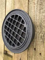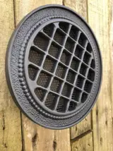 Het ronde ventilatierooster kan worden gebruikt voor zwaartekrachtventilatie en voor de distributie van warme lucht uit de haard en maakt de implementatie van de toevoerluchtverwarmingsinstallatie in andere ruimten mogelijk. De bevestigingsmaat van het rooster is aangepast aan de diameter van geïsoleerde flexibele kanalen die worden gebruikt om warme lucht te verdelen.