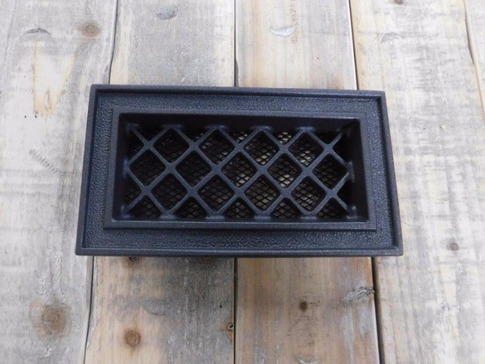 Mooi openhaard lucht rooster van aluminium zwart met vlieggaas als bescherming tegen insluip van ongewenste insekten.