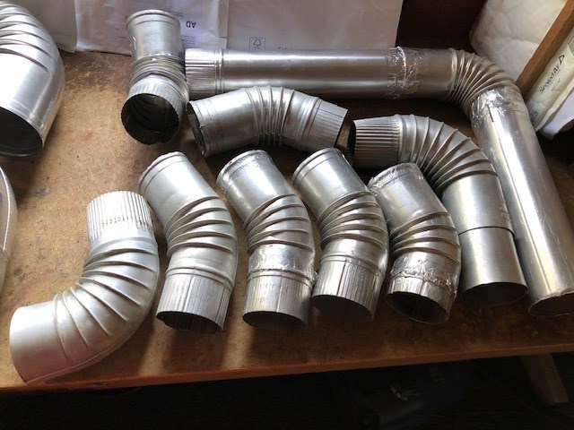 Goede gebruikte diverse Alu afvoerpijpen, alles enkel pijp zoals pijpen, bochten, verlopen, trek/ regenkappen, rozetten etc., zolang voorraad strekt.