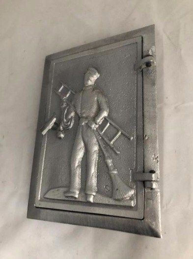Een bijzonder prachtig vormgegeven inspectie deur voor het reinigen van het rooster. De prachtige antieke patroon met grappige schoorsteenveger op de klep is van historisch fenomeen. Dit werkte onder het oude model gietijzeren deur kunt u uw haard een praktische ornament toe te voegen.