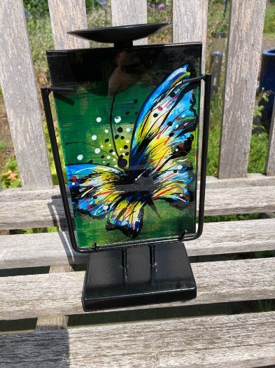 BUTTERFLY KANDELAAR GLAS NIEUW