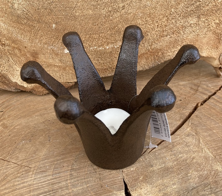 Kroontje is van gietijzer geschikt om een waxinelichtje in te plaatsen.