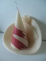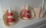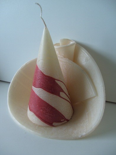 HANDGEVOUWEN KAARSEN HAND MADE ROOD ECRU PIRAMIDE GROOT NIEUW