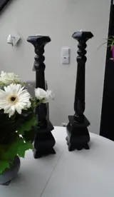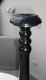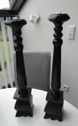 HOUTEN HANDGEMAAKTE KANDELAAR ZWART 60 CM NIEUW.