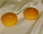 Grote kaars in honing kleur ± Ø 8 cm hoog 4,5 cm.