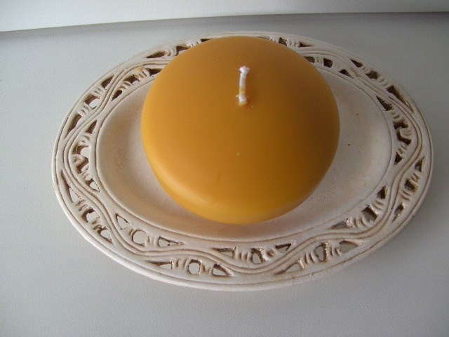 Grote kaars in ivoor kleur ± Ø 8 cm hoog 4,5 cm
