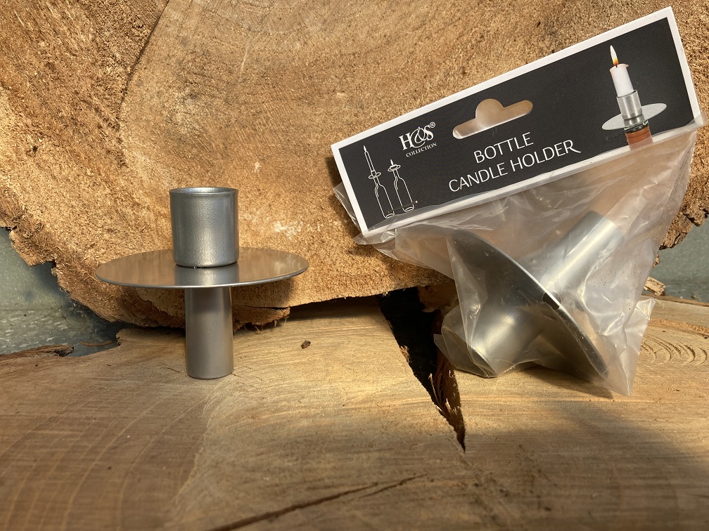 KAARSENHOUDER BOTTLE CANDLE HOLDER ZILVER NIEUW