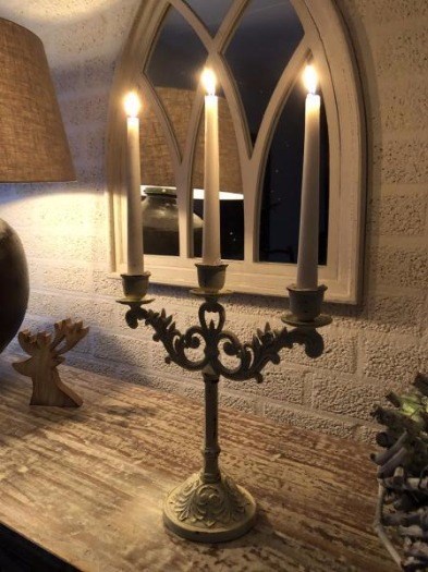 3 armige gietijzeren kaarsenkandelaar, gietijzer-old-white, super mooi