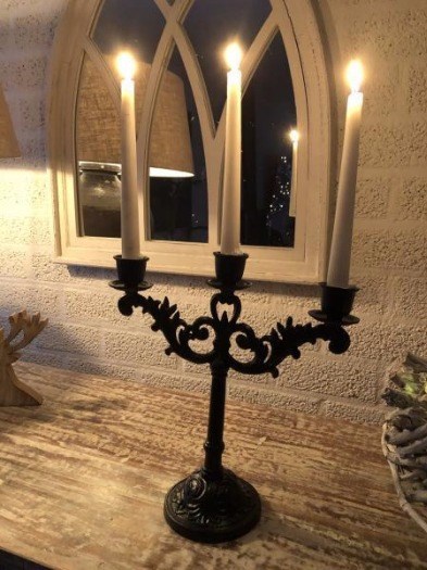 Levering: 1 x 3 armige kaarsenkandelaar gietijzer zwart- rust.