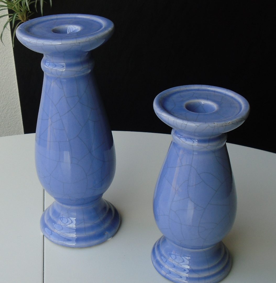 KANDELAAR LILA MET CRAQUELE OLD LOOK GROOT 24,5 CM NIEUW