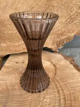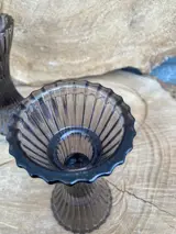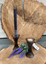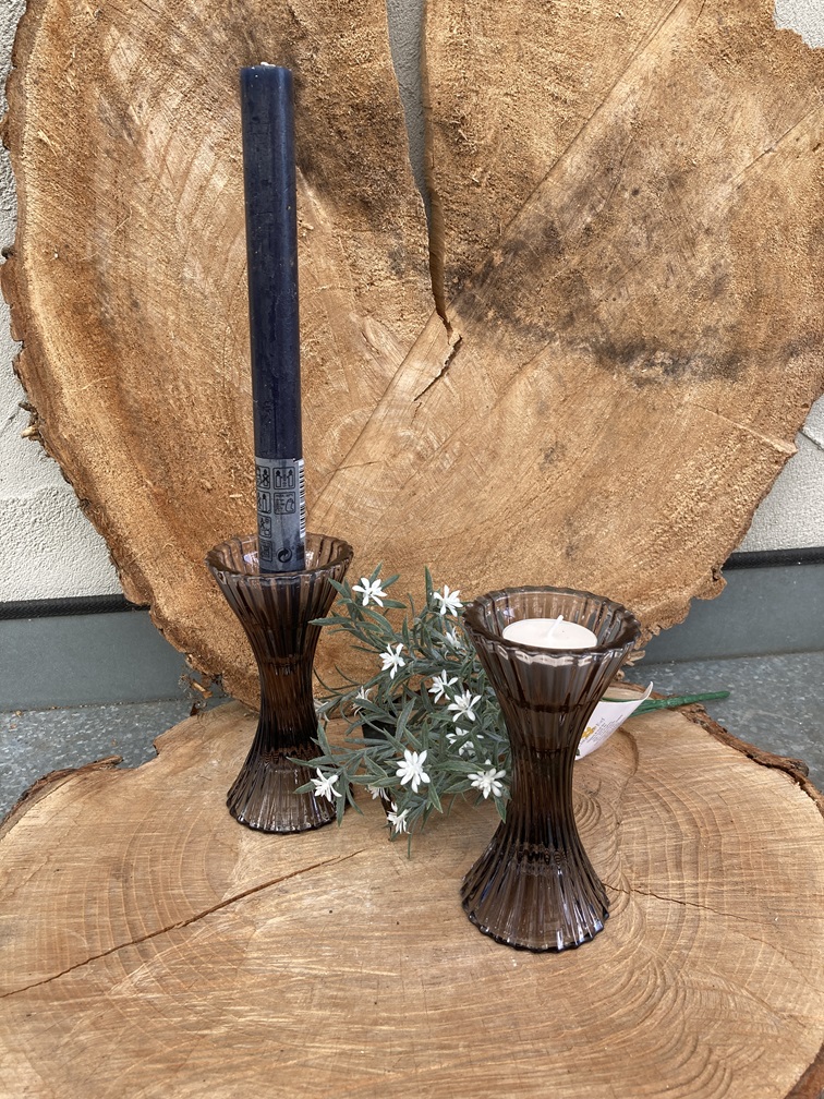 KANDELAAR RIBBEL SMOKEY GLAS DINER- WAXINELICHT 2 DLG NIEUW