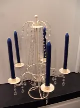 Grote metalen kandelaar voor 5 dinerkaarsen.