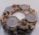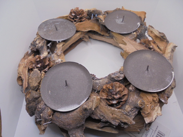 Mooie krans van hout met 4 kaarsenhouders voor stompkaarsen tot max 7 cm.