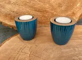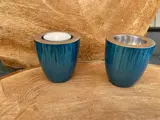 WAXINELICHT/ KANDELAAR ZWAAR ALUMINIUM TURQUOISE NIEUW