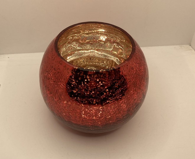 WINDLICHT BOL CRAQUELE GLAS PAREL EFFECT ROOD 12,5 cm