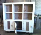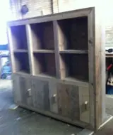 Kast van steigerhout in de afmeting 1,70m breed 1,60m hoog en 40cm diep. Voor andere maten of modellen, kijk bij hillshome waalwijk, we maken alles op maat en bestelling.