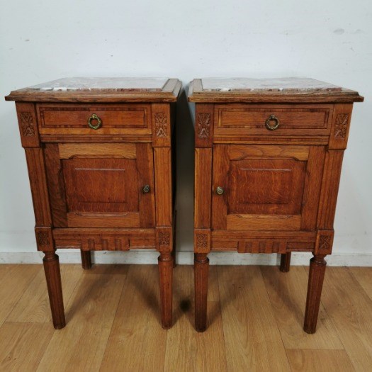 Groot aanbod aan vintage, antieke nachtkastjes met marmer blad.