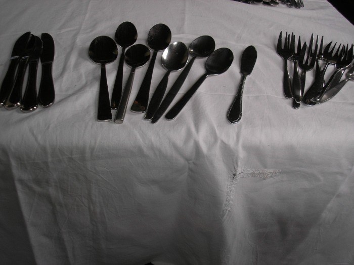 -- 7 - dessert lepels - 4 - messen klein - 1 - botermesje - 8 - gebaksvorkjes
