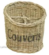 Bestekmand gemaakt van rustiek rotan, 4 vakken en opdruk Couverts.