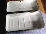 Emaille broodtrommel, groen met gouden bies