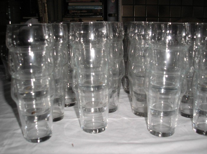 GLAS - wijnglazen, bierglazen enz.- 17 bierglazen- 4 x 12 wijnglazen, veelal dezelfde - 6 cola glazen- DOE EEN BOD , op het geheel of een onderdeel. Ga ikakkoord met je bod dan krijg je bericht
