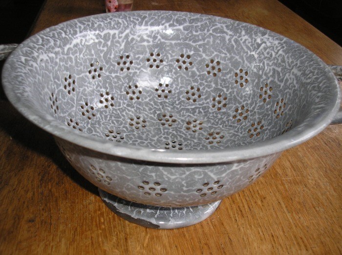 Grijs gewolkt emaille, vergiet
