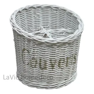 Met deze bestekmand van wit riet altijd bestek en ander keukengerei bij de hand.