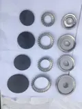 Afm. B x H brander deksels:: groot 8 x 0,4 cm, midden 6 x 0,4 cm en klein 4,7 x 0,4 cm.
