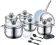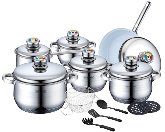 Pannenset 18dlg. RVS met metalen deksels.