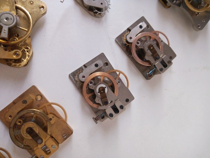 39 echappementen voor klokken. Duits en Zwitsers fabrikaat.
