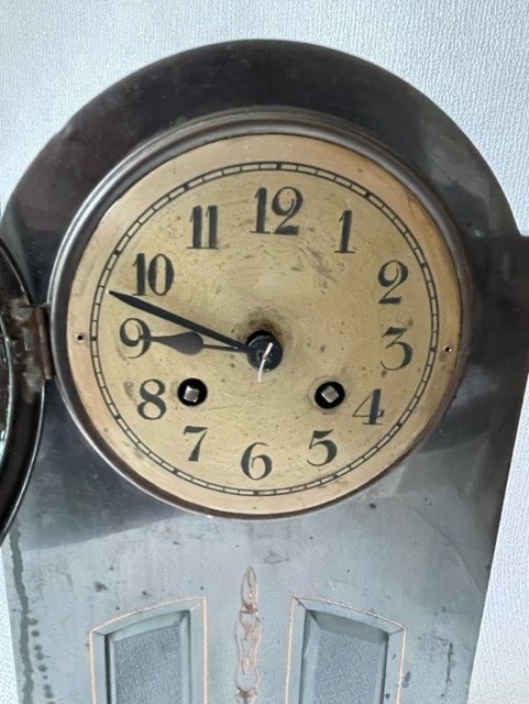 De klok is in prima werkende staat en slaat het heel en half uur op een bel. Klok wordt geleverd met sleutel en slinger.