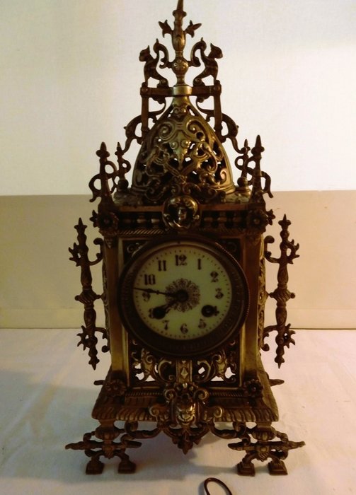 bronzenFranseKathedraal klok 1860 - Brons (verguld/verzilverd/gepatineerd/koud geschilderd) - Eind 19e eeuw