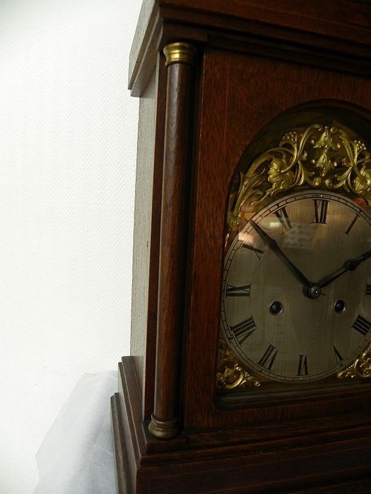 Het uurwerk slaat elk half uur met vier hamers op even zoveel gongstaven, maar is verrassend zacht van geluid. Voor het opwinden van de veren maakt een sleutel deel uit van dit kavel.