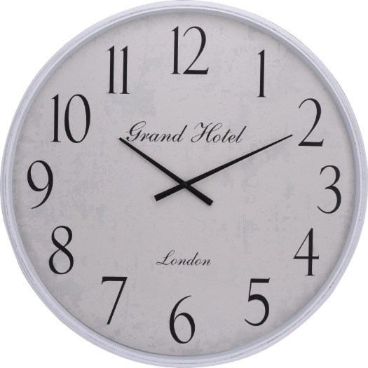 De grote klok Grand Hotel is een moderne klok met een wit gemeleerde wijzerplaat.