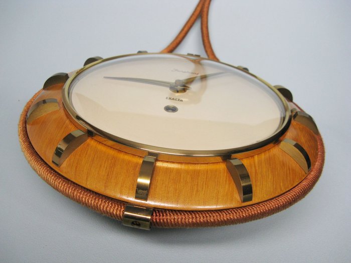 Merk: Junghans Exacta Wandklok met Origineel Gebogen Glas en Messing Accent Knuppel Cijfer