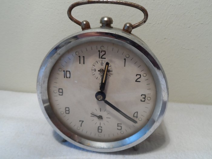 6.JAZ (Fr.) Ca 1955. Nikkel. Op bolpootjes. Repetitiewekker.