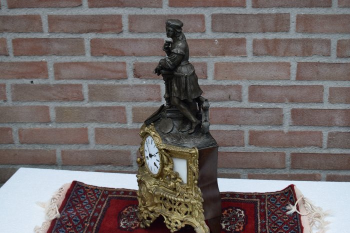 Pendule van gepatineerd en verguld zamak