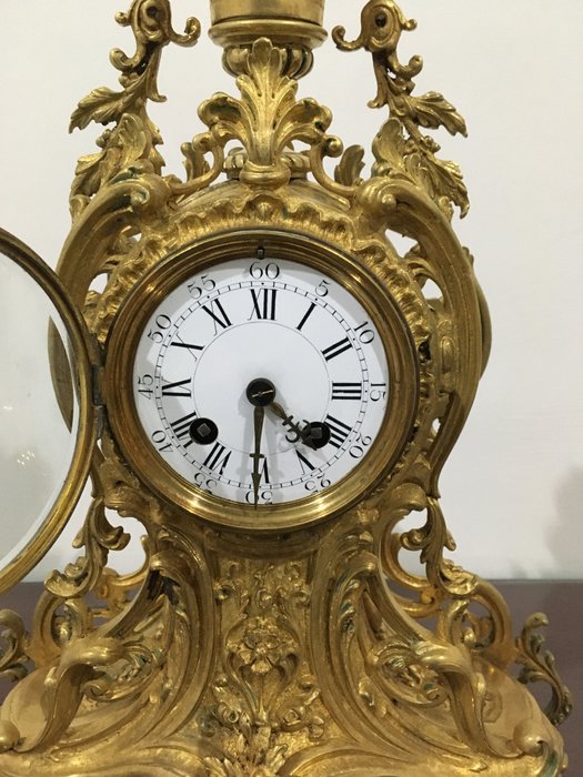 Verfijnde Franse verguld bronzen klok uit eind 19e eeuw, werkend en in uitstekende staat.