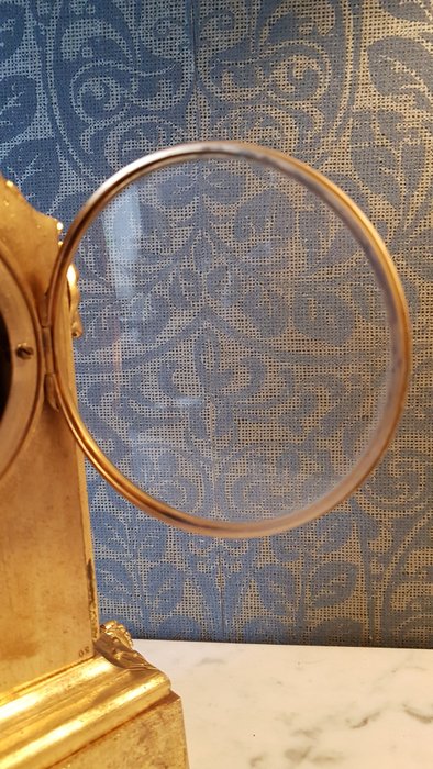 Prachtigeverguld bronzen pendule.Met vier puntgave Se'vres plaquetten. Aan beide zijden een sater- kop, afgewerkt met guirlandes.Gewicht: 5.2 kilo.Wordt geleverd met sleutel en slinger. In perfecte staat zonder restauraties.