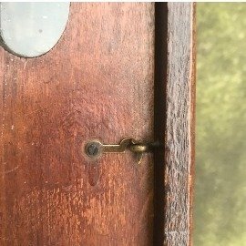 Prachtige wandklok uit het zwarte woud. Rijk gestoken en versierd. Met een prachtig kwaliteits uurwerk van Duitse makelij van Frederich Mauthe Schwenningen(FMS) met extra detailnummers aan de binnenste ring van de wijzerplaat. Het uurwerk is gemerkt en gestempelt met : 42/105, D.R.P(Deutsche Reich Patent), Fms logo met adelaar(wat vager te zien ik geloof op foto 12), N. 55006, 440, Gongschlag. De klok is in goede werkende staat en is een juweel in je huis. Dit is een luxe klok, gezien de fraaie details en messingen/bronzen muursteuntjes en sluit en vanghaakje. Deze was waarschijnlijk afkomstig van een goede middenklasser die tegen de rijke klasse aanlag. Behalve dat het hout rijk gestoken is, is de slinger ook erg versierd met mooie gravures. De klok heeft ook een mooie warme gongslag wat een sfeertje in huis schept. Er zit een sleutel bij inbegrepen. De klok is in het echt veel mooier dan op de foto's. het enige wat er nog over te zeggen is is dat het bovenste glas ontbreekt.