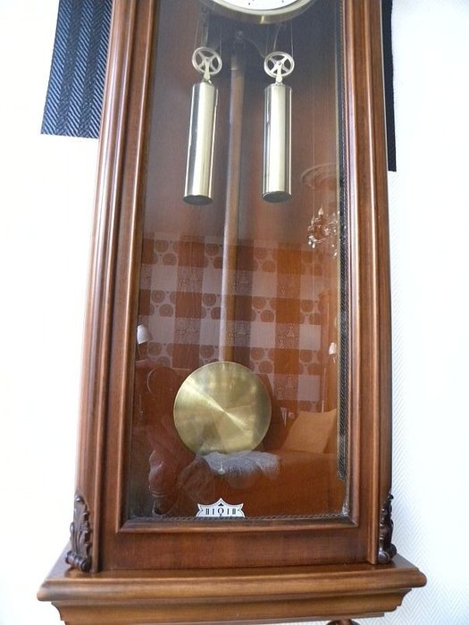 Het uurwerk heeft een servicebeurt gehad. Desondanks weigert het uurwerk te slaan op de 3 gongstaven. De klok loopt wel. Voor het opdraaien van de gewichten maakt een sleutel deel uit van het kavel.