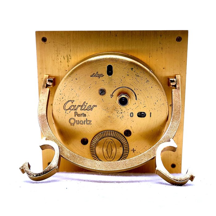 Schitterende CARTIER reiswekker gemaakt van verguld metaal en email.
