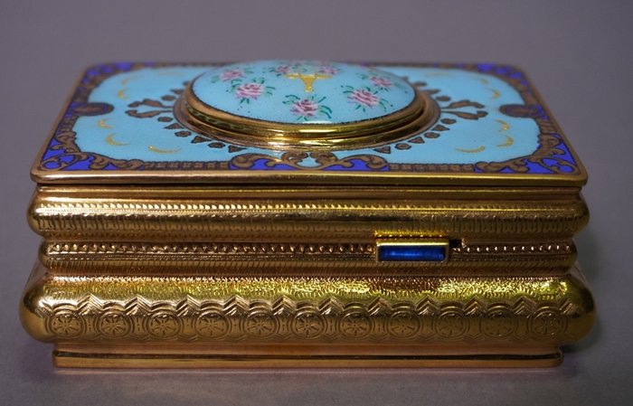 In het doosje zit een mechanisch speelwerk met veeropwinding. Bij het openen van het doosje komt een vogeltje naar buiten en begint een deuntje te fluiten waarbij het van links naar rechts draait en zijn vleugeltjes en bekje beweegt. Na het einde van de melodie verdwijnt het vogeltje weer in zijn doosje en het deksel klapt weer dicht. Het geheel is recent nagekeken waarbij alles gereinigd en gesmeerd is daarnaast is de blaasbalg vervangen. Het geheel functioneert weer optimaal. Het opwindsleuteltje is in de vorm van een vogeltje. De originele gebruikshandleiding is aanwezig. Ook is er een beschermdoos van recentere datum om het geheel netjes op te bergen. Het doosje zelf is 11 x 7,5 x 5 cm groot en is rondom voorzien van prachtig guilloché en graveer werk. De bovenkant is fraai geëmailleerd.
