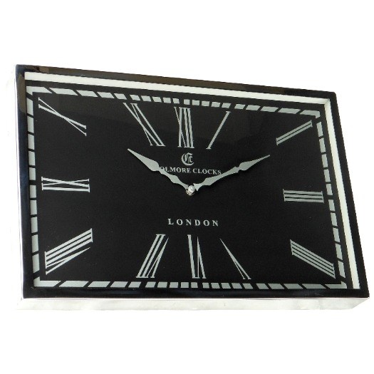 Wandklok groot, zwart en rechthoekig model van Colmore Clocks London.