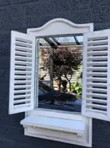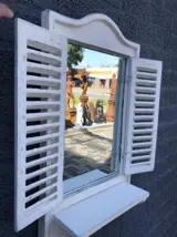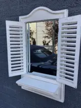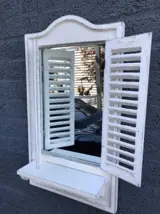 Leveringsomvang: 1 spiegel met deurtjes hout old white.