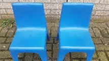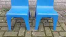 Stevige kunststof stoeltjes met rugleuning.