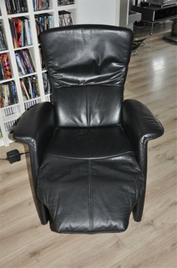 zwart leder fauteuil geheel electrisch verstelbaar in perfecte staat ! met afstandsbediening
