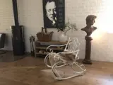 Een heerlijk dromerige smeedijzeren schommelstoel, old-white