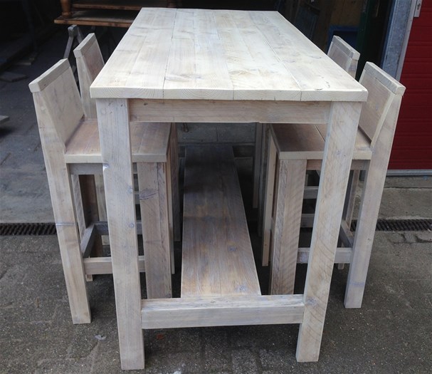 Bartafel van steigerhout in de afmeting 70x70x110, de tafel kan in iedere maat voor u gemaakt worden.