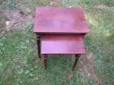 - mimiset - 2 tafeltjes - mooi gedraaide pootjes i.p.st. Afm: grote tafel: breedte 44 - hoogte 39 - diepte 33 afm: kleine tafel: breedte 33 - hoogte 33 - diepte 29 - 17,50